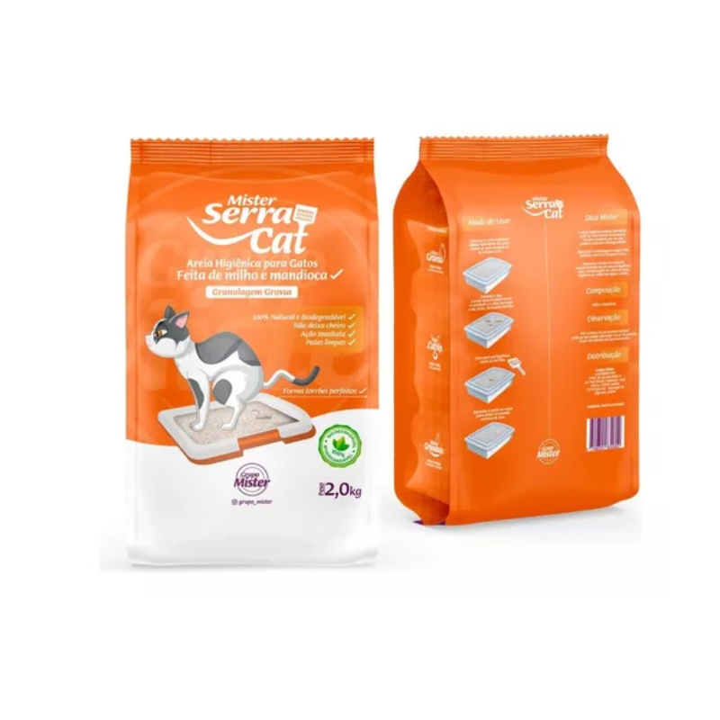 AREIA HIGIÊNICA BIODEGRADÁVEL GROSSA MISTER SERRA CAT 2KG