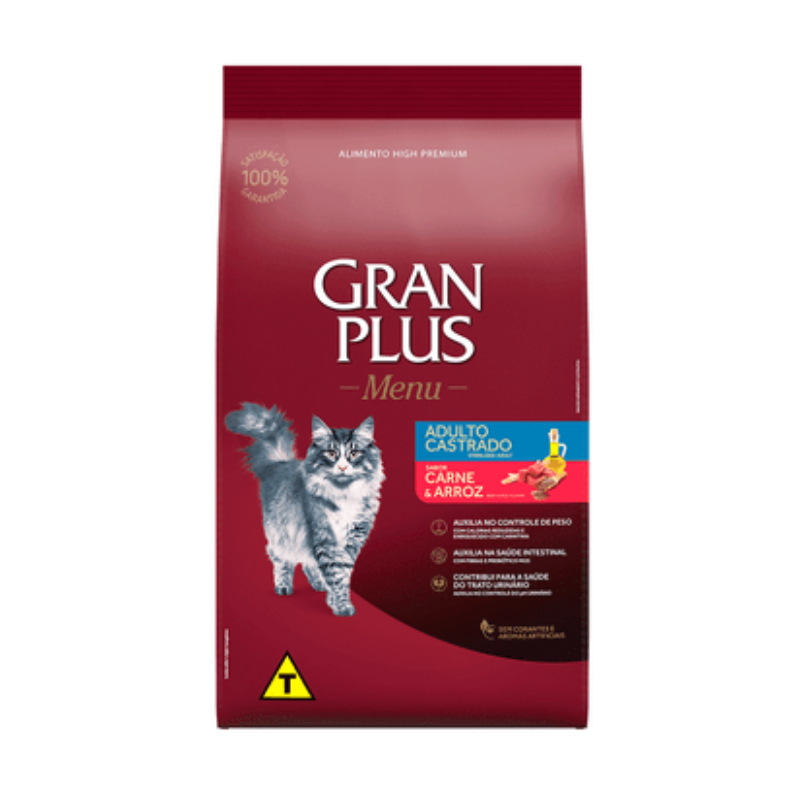 GRAN PLUS MENU GATO CASTRADO CARNE E ARROZ 3KG