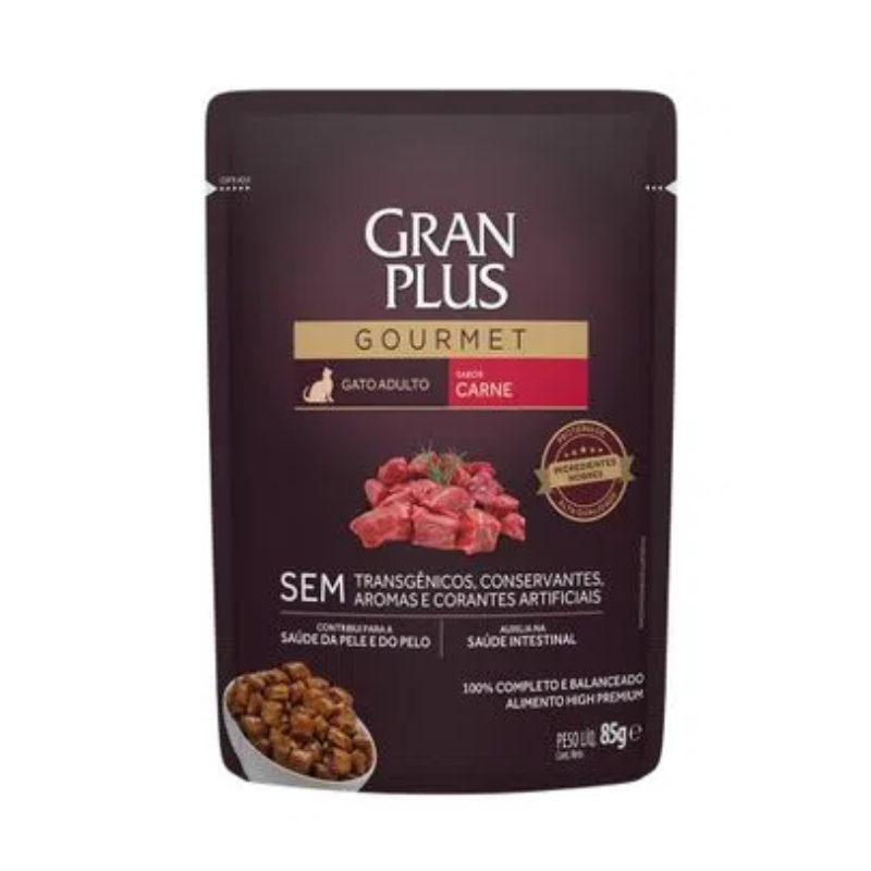 GRAN PLUS SACHÊ GOURMET GATO ADULTO CARNE 85G