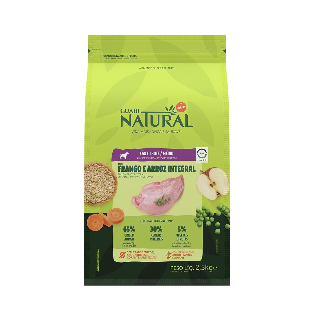 RAÇÃO GUABI NATURAL CÃO FILHOTE MÉDIO FRANGO E ARROZ INTEGRAL