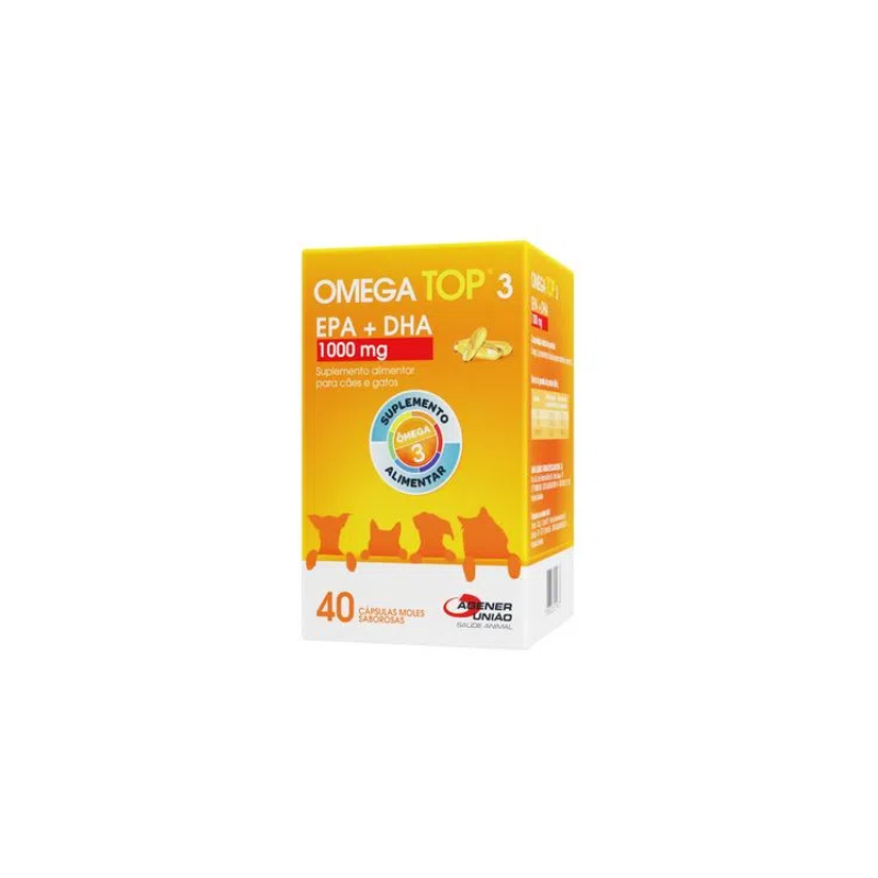 SUPLEMENTO PARA CÃES E GATOS OMEGA TOP 3 1000 MG 40 CÁPSULAS