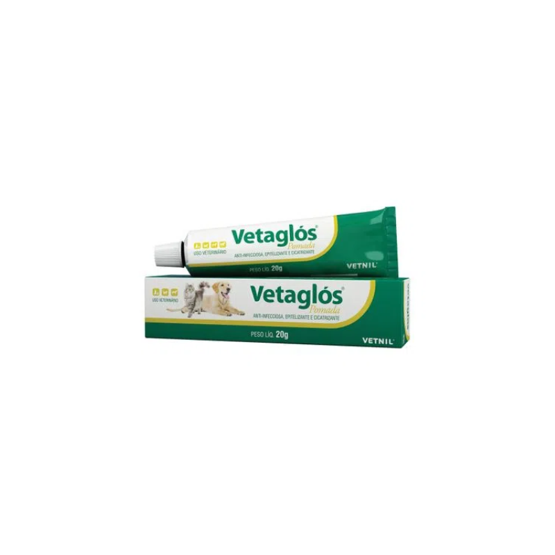 <p>A Pomada Vetaglós é uma pomada anti-infecciosa, epitelizante e cicatrizante, indicada principalmente para ser aplicada em: Ferimentos superficiais na pele e também os de difícil cicatrização; Ferimentos em articulações muito móveis; Feridas de lesões ou coceiras do casco e da pele; Queimaduras, dermatites e rachaduras da pele; Proteção de feridas cirúrgicas.</p>